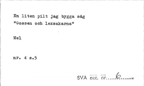 //// En liten pilt jag bygga såg "Gossen och leksakarna" //// Mel //// nr. 4 s.5 //// SVA öcc. nr...k... ////