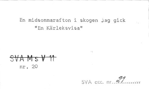 //// En midsommarafton i skogen Jag gick "En Kärleksvisa" //// SVA Ms V 11 //// nr. 20 //// SVA ccc. nr...t ////