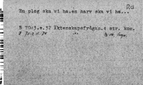 //// ... -Ra- //// = "En plog ska vi ha,en harv ska vi ha... ¦ //// ¦ //// B 70:s.32 Iktenskapafrågan.4 str. kom. //// s //// 3* //// i . ,'-<v"'¦• v-5"'-'' '< ¦ - . ' //// V.-:.\ :¦,.- ^. . — ////