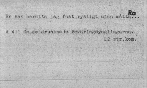 //// Ro //// En sak berät ta jag fast rysligt utan måtta... //// A 411 Om de drunknade Bévärlngsynglirigarna. //// 22 str.kom. ////