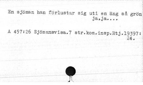 //// En sjöman han förlastar sig uti en äng så grön //// ja tja»•»» //// A 457:26 3j ömansvisa.7 str.kom.insp.Rtj.19397: //// 24. //// t ////