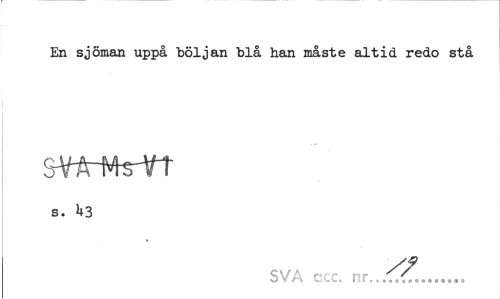//// En sjöman uppå böljan blå han måste altid redo stå //// S-VÄ-Ms-Yt //// s. U3 //// SVA g c c. nr...^f... ////