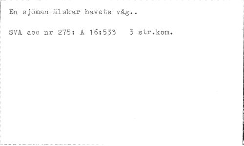 //// En sjöman älskar havets våg.. //// SVA acc nr 275: A 16:533 3 str.kom. ////