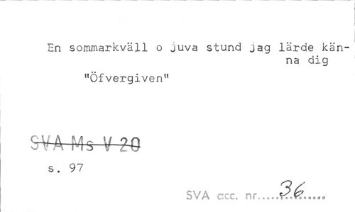 //// En sommarkväll o juva stund jag lärde känna dig //// "Öfvergiven" //// S¥Ä Ms V 20 //// s. 97 //// SVA ccc. nr. ////