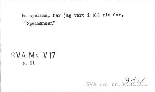 //// En spelman, har jag vart i all min dar, "Spelmannen" //// SVA Ms V17 //// s. 11 //// SVA ccc. nr. ////