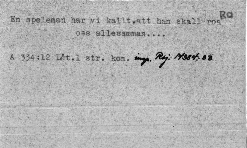 //// ' Ro //// En speleman har vi kallt,att han skall-roa ¦oss allesamman,»,, //// A '534:12 Lét.l str. kom. sYå**»3 ' ////