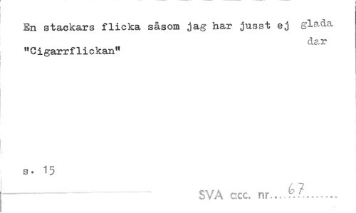 //// En stackars flicka såsom jag har jusst ej glada //// dar //// "Cigarrfliekan" //// s. 15 //// SVA ccc. nr...f$£.„„t ////
