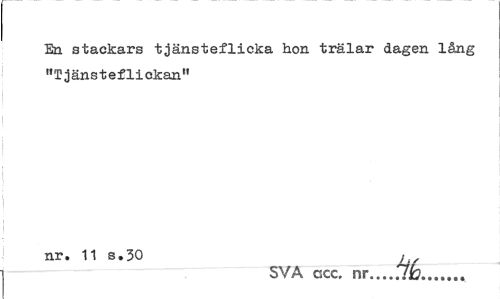 //// En stackars tjänsteflicka hon trälar dagen läng "Tjänsteflickan" //// nr. 11 s.30 i //// SVA ccc. nr...71b... ////