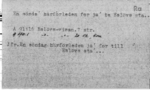 //// Rann sond»' härförleden for ia' te Eslövs -ta.. //// I //// A 91:16 Eslövs-visan.7 str. f -v- Jtt ^»v. //// - Jfr.En söndag-härförleden for till //// Islövs sta'... //// f'-'-. \ '1 ¦• '' . - .i ..-• ' - s.' ..i-- ; ¦;"'¦'' //// .- ' : ; ¦ -V. v' , — '¦: . - , " '' ' ' " ¦ . //// v ; . , - -V . 1 * ./ . '. -„. , ... //// - t ¦ \ ' ¦ //// V - * % v;- ".'i-.v . ¦ ' v _ - ... ////