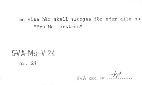 //// En visa här skall sjungas för eder alla nu "Fru Netterström" //// SVA Ms V 24 //// nr. 24 //// SVA cxc. nr...r... ////