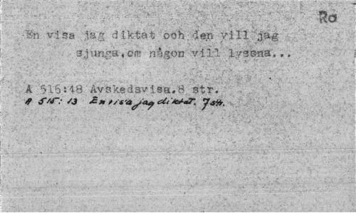 //// En visa lag diktat ooh. den vill'jag //// sjunga, crn någon vill lyssna.., //// A 516:AvskedsvIsa.B str. /f S'<t~- /J £m */* 'aya? JsVr. //// f '.•'!,•'¦ fe- ¦"'¦v,' -".'i- ' fe'- .^.'Vfe" ".*•'¦» ¦•'¦•''i--' ////