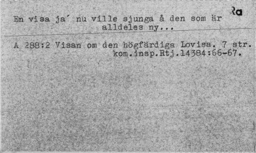 //// En visa ja' nu ville sjunga å den som är _alldeles ny..._ //// A 288:2 Visan om den högfärdiga Lovisa. 7 str. //// kom.insp.Rtj.14384:66-67. ////