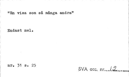 //// "En visa som så många andra" Endast mel. //// nr. 31 s. 25 . , //// SVA ccc, nr... ////