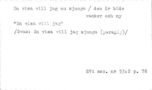 //// En visa vill jag nu sjunga / den är både //// vacker och ny //// "En visa vill jag" //// /Svas: En visa vill jag sjunga (paraply)/ //// 3VA acc. nr 53:2 p. ?8 ////