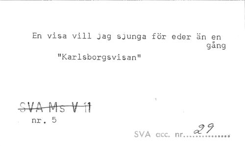 //// En visa vill jag sjunga för eder än en //// gång //// "Karlsborgsvisan" //// nr. 5 //// SVA cscc. n ////