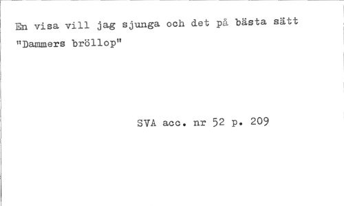 //// En visa vill jag sjunga ocii det på bästa sätt "Dammers bröllop" //// SVA acc. nr 52 p. 209 ////