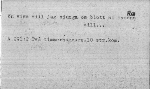 //// I Ra //// £n visa vill jag sjunga om blott ni lyssna //// vill.. . //// A 291:2 Två timmerhuggare.10 str.kom. ////
