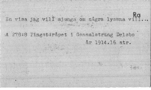 //// En visa jag vilt sjunga om några lyssna vill.., //// •A 278:8 Pingstdråpet i Ga mm al st rang Delsbo //// .år 1914.16 str. ////