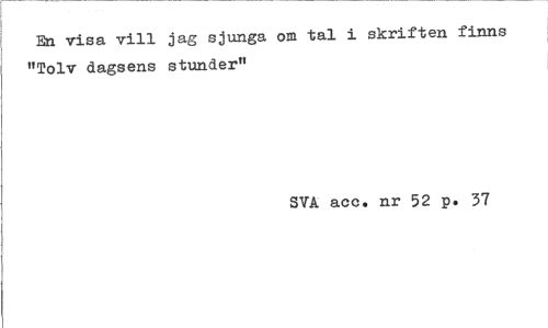 //// En visa vill jag sjunga om tal i skriften finns //// "Tolv dagsens stunder" //// SVA acc. nr 52 p. 37 ////