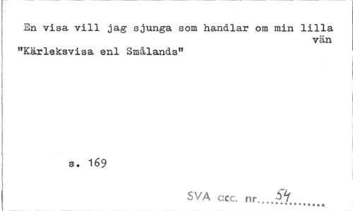 //// En visa vill jag sjunga som handlar om min lilla //// vän //// "Kärleksvisa enl Smålands" s. 169 //// SVA ccc. nr.,..:*t... ////