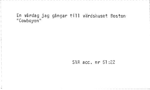 //// En vårdag jag gångar till värdshuset Boston "Cowboyen" //// SVA acc. nr 51:22 //// i | ////