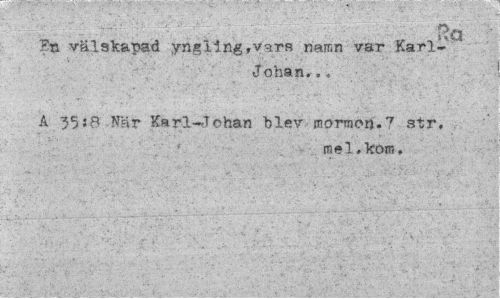 //// • ": i' :: . En välskanad yngling,vars namn var Karl-" //// Johan... //// A 35:8 När Karl-Johan "blev mormon.7 str, //// mel.kom, //// ... ////