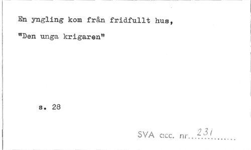 //// En yngling kom från fridfullt hus, "Den unga krigaren" //// s. 28 //// SVA ccc. nr.,..:*t... ////