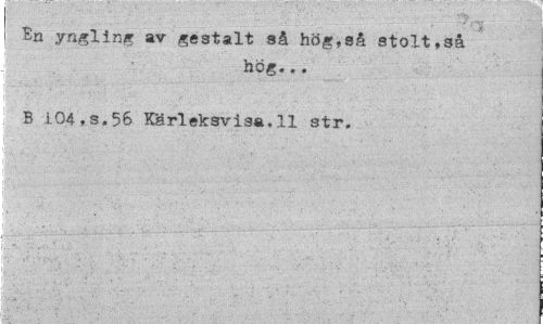 //// I En yngling av gestalt så hög,så stolt,så //// hög... //// B 104,s.56 Kgrleksvisa.il str. ////