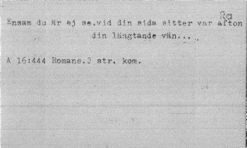 //// •vj //// &nsara du är e,i se,vid din sida sitter var afton //// din längtande vän... //// A 16:Ad4 Romans,2 str. kom. ////