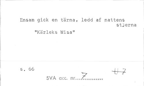 //// Ensam gick en tärna, ledd af nattens //// stjerna //// "Kärleks Wisa" //// s-66 v -th? SVA ccc. nr...,^,.,,,,»,,, ////