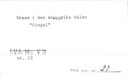 //// Ensam i den skyggrika dalen "Fingal" //// SVA Ms vir ___ //// nr. 12 //// SVA cxc. nr.,fx.m ////