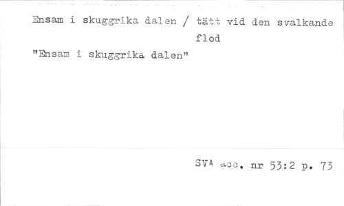 //// Ensam i skuggrika dalan / tätt vid dsn svalkande //// flod //// "Ensam i skuggrik» dalen" //// SVA aoc. nr 53:2 p. 73 ////
