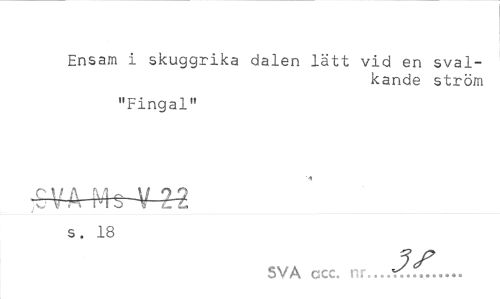 //// Ensam i skuggrika dalen lätt vid en svalkande ström //// "Fingal" //// s. 18 //// 5V7 //// SVA ccc. nr...r:... ////