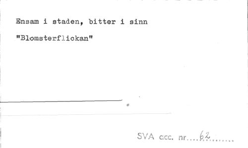 //// Ensam i staden, bitter i sinn "Blomsterflickan" //// * //// SVA ccc. nr... ////