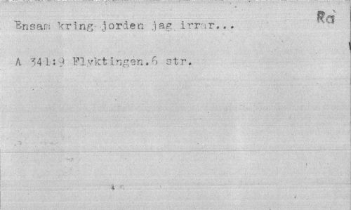 //// "Ensam kring jorden jag irr r.. . A 5 41s9 Flyktingen.6 str. //// i ¦¦¦. ////