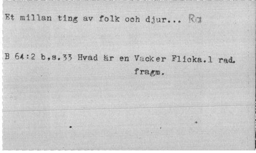 //// I y-% //// Et millan ting av folk och djur... //// i //// B 64- 2 bf8.3? Hvad är en Vacker Flicka.1 rad. //// fragro. ////