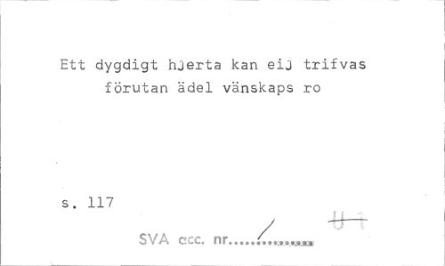 //// Ett dygdigt hjerta kan eij trifvas förutan ädel vänskaps ro //// s. 117 //// f i //// SVA ccc. ni... ////