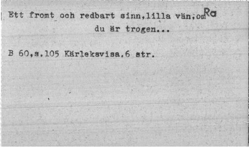 //// Ett fromt ooh redbart sinnflilla vän, ooFa //// du är trogen... //// B 60,3.105 Kärleksvisa.6 str. //// \ ////