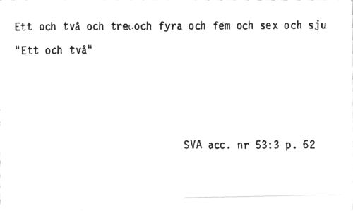 //// Ett och två och tre^och fyra och fem och sex och s.iu "Ett och två" //// SVA acc. nr 53:3 p. 62 ////