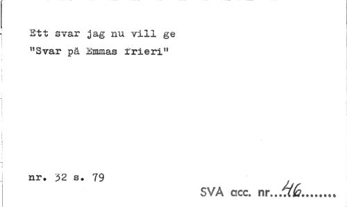 //// Ett svar jag nu vill ge "Svar pä ammas frieri" //// nr. 32 s. 79 , //// SVA ccc. ...«, ////