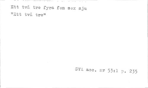 //// Ett två tre fyra fem sex sju "Ett två tre" //// 3VÅ acc. nr 53:1 p. 235 ////