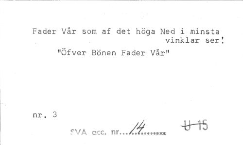 //// bader Vår som af det höga Ned i minsta //// vinklar ser! //// "Öfver Bönen Fader Vår" //// nr. 3 //// // //// fVA ccc. nr...a.Xm ////