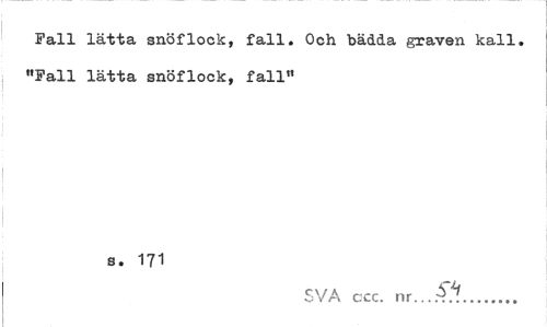 //// Fall lätta snöflock, fall. Och bädda graven kall. "Fall lätta snöflock, fall" //// s. 171 //// i SVA ccc. ... ////