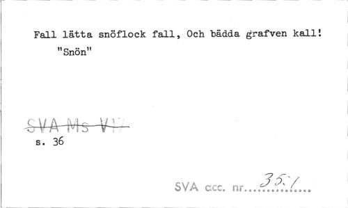 //// Fall lätta snöflock fall, Och bädda grafven kall! "Snön" //// s. 36 //// SVA ccc. nr ////