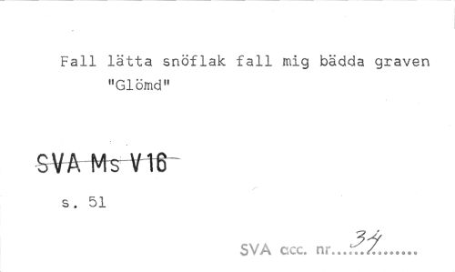 //// Fall lätta snöflak fall mig bädda graven "Glömd" //// SVA Ms V16 //// s. 51 //// SVA ccc. nr t:..C... ////
