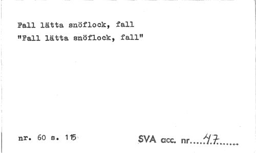 //// Fall lätta snöflock:, fall "Fall lätta snöflock, fall" //// nr* 60 s* 115 SVA acc. nr...Ä£... ////