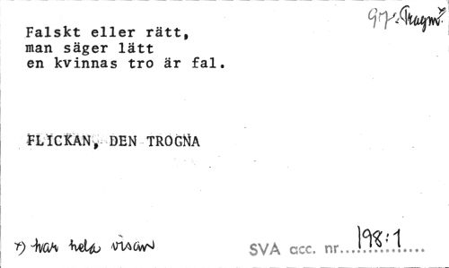 //// WMt //// Falskt eller rätt, ' //// man säger lätt en kvinnas tro är fal. //// FLICKAN, DEN TROGNA //// w^u ATUCvvN sva ccc. nr..J^?.'..!... ////