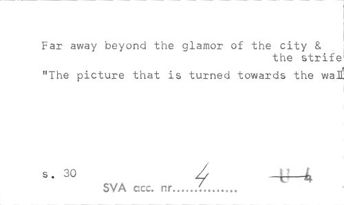 //// Far away beyond the glamor of the city & //// the strife //// "The picture that is turned towards the wal //// s. 30 / y 4 SVA ccc. nr...(,... ////