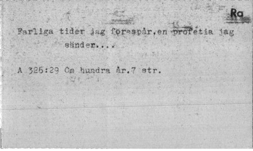 //// Parliga tider fotspår,en'profetia lag //// aänder...» //// A 326:29 Cm hundra år.7 9tr. ////
