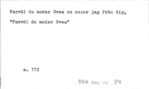 //// Farväl du moder Svea nu reser jag från dig, "Farväl du moder Svea" //// s. 172 //// SVA ccc. nr 5*1 ////